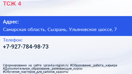ТСЖ №4 по адресу Самарская область, Сызрань, Ульяновское шоссе, 7 в дальнейшем Организация, размещена в следующих категориях: