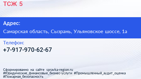 ТСЖ №5 по адресу Самарская область, Сызрань, Ульяновское шоссе, 1а в дальнейшем Организация, размещена в следующих категориях: