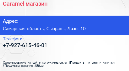 Caramel, магазин по адресу Самарская область, Сызрань, Лазо, 10 в дальнейшем Организация, размещена в следующих категориях:
