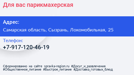 Для вас, парикмахерская по адресу Самарская область, Сызрань, Локомобильная, 25 в дальнейшем Организация, размещена в следующих категориях: