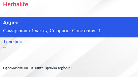 Herbalife по адресу Самарская область, Сызрань, Советская, 1 в дальнейшем Организация, размещена в следующих категориях: