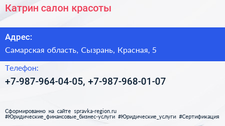 Катрин, салон красоты по адресу Самарская область, Сызрань, Красная, 5 в дальнейшем Организация, размещена в следующих категориях: