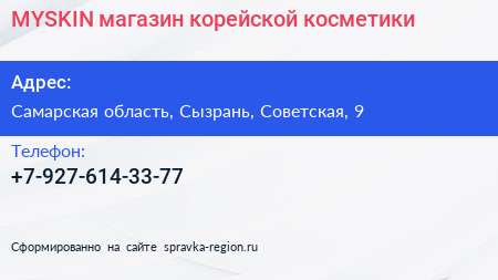 MYSKIN, магазин корейской косметики по адресу Самарская область, Сызрань, Советская, 9 в дальнейшем Организация, размещена в следующих категориях: