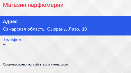 Магазин парфюмерии по адресу Самарская область, Сызрань, Лазо, 10 в дальнейшем Организация, размещена в следующих категориях: