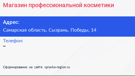 Магазин профессиональной косметики по адресу Самарская область, Сызрань, Победы, 14 в дальнейшем Организация, размещена в следующих категориях: