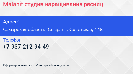 Malahit, студия наращивания ресниц по адресу Самарская область, Сызрань, Советская, 148 в дальнейшем Организация, размещена в следующих категориях:
