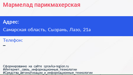 Мармелад, парикмахерская по адресу Самарская область, Сызрань, Лазо, 21а в дальнейшем Организация, размещена в следующих категориях: