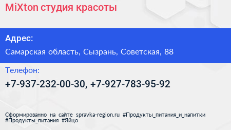 MiXton, студия красоты по адресу Самарская область, Сызрань, Советская, 88 в дальнейшем Организация, размещена в следующих категориях:
