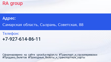 RA group по адресу Самарская область, Сызрань, Советская, 88 в дальнейшем Организация, размещена в следующих категориях: