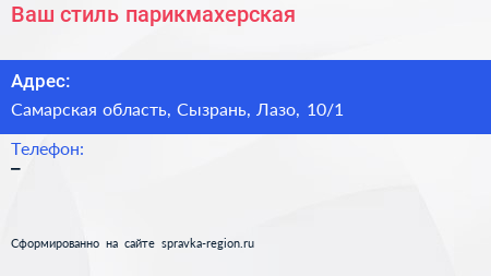 Ваш стиль, парикмахерская по адресу Самарская область, Сызрань, Лазо, 10/1 в дальнейшем Организация, размещена в следующих категориях: