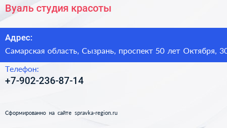 Вуаль, студия красоты по адресу Самарская область, Сызрань, проспект 50 лет Октября, 30 в дальнейшем Организация, размещена в следующих категориях: