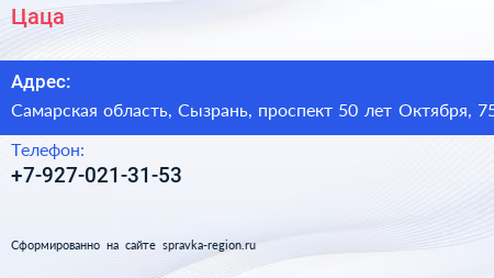 Цаца по адресу Самарская область, Сызрань, проспект 50 лет Октября, 75 в дальнейшем Организация, размещена в следующих категориях: