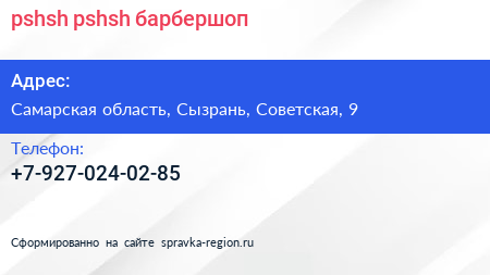 pshsh-pshsh, барбершоп по адресу Самарская область, Сызрань, Советская, 9 в дальнейшем Организация, размещена в следующих категориях: