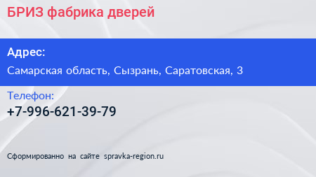 БРИЗ, фабрика дверей по адресу Самарская область, Сызрань, Саратовская, 3 в дальнейшем Организация, размещена в следующих категориях: