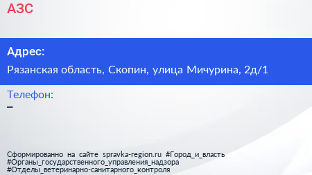 АЗС по адресу Рязанская область, Скопин, улица Мичурина, 2д/1 в дальнейшем Организация, размещена в следующих категориях: