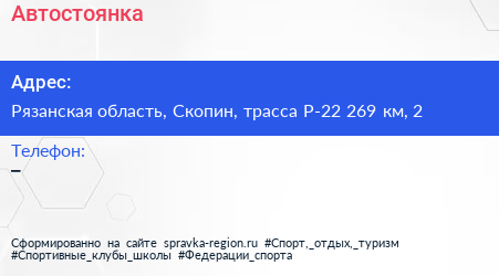 Адрес: Рязанская область, Скопин, трасса Р-22 269 км, 1