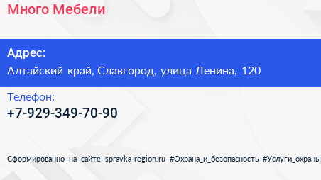 Много Мебели по адресу Алтайский край, Славгород, улица Ленина, 120 в дальнейшем Организация, размещена в следующих категориях: