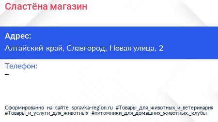 Сластёна, магазин по адресу Алтайский край, Славгород, Новая улица, 2 в дальнейшем Организация, размещена в следующих категориях: