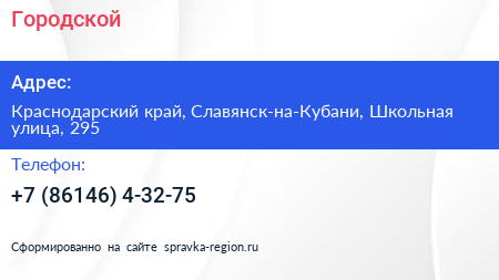 Городской по адресу Краснодарский край, Славянск-на-Кубани, Школьная улица, 295 в дальнейшем Организация, размещена в следующих категориях: