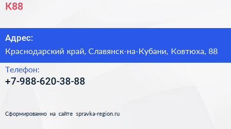 К88 по адресу Краснодарский край, Славянск-на-Кубани, Ковтюха, 88 в дальнейшем Организация, размещена в следующих категориях: