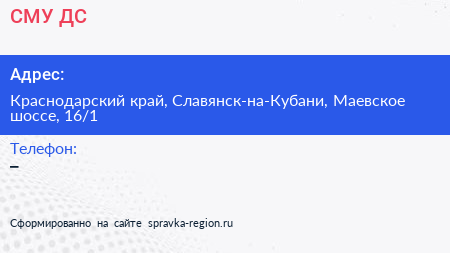 СМУ ДС по адресу Краснодарский край, Славянск-на-Кубани, Маевское шоссе, 16/1 в дальнейшем Организация, размещена в следующих категориях: