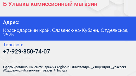 Б/Улавка, комиссионный магазин по адресу Краснодарский край, Славянск-на-Кубани, Отдельская, 257Б в дальнейшем Организация, размещена в следующих категориях: