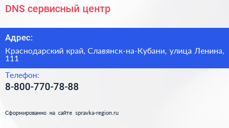 DNS, сервисный центр по адресу Краснодарский край, Славянск-на-Кубани, улица Ленина, 111 в дальнейшем Организация, размещена в следующих категориях: