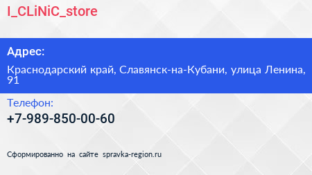 I_CLiNiC_store по адресу Краснодарский край, Славянск-на-Кубани, улица Ленина, 91 в дальнейшем Организация, размещена в следующих категориях: