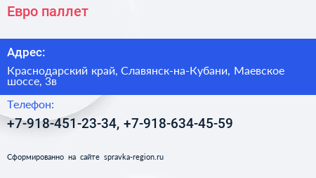 Евро-паллет по адресу Краснодарский край, Славянск-на-Кубани, Маевское шоссе, 3в в дальнейшем Организация, размещена в следующих категориях: