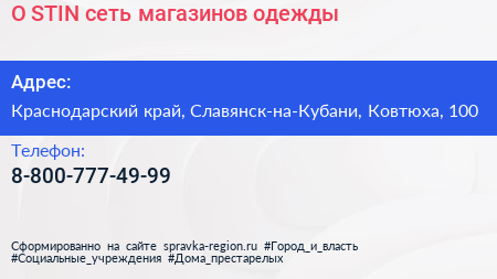 O`STIN, сеть магазинов одежды по адресу Краснодарский край, Славянск-на-Кубани, Ковтюха, 100 в дальнейшем Организация, размещена в следующих категориях:
