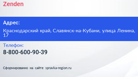Zenden по адресу Краснодарский край, Славянск-на-Кубани, улица Ленина, 17 в дальнейшем Организация, размещена в следующих категориях: