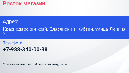 Росток, магазин по адресу Краснодарский край, Славянск-на-Кубани, улица Ленина, 9 в дальнейшем Организация, размещена в следующих категориях: