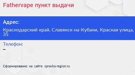 Fathervape, пункт выдачи по адресу Краснодарский край, Славянск-на-Кубани, Красная улица, 35 в дальнейшем Организация, размещена в следующих категориях: