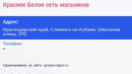 Красное & Белое, сеть магазинов по адресу Краснодарский край, Славянск-на-Кубани, Школьная улица, 292 в дальнейшем Организация, размещена в следующих категориях: