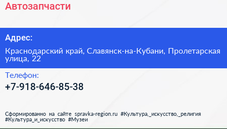 Автозапчасти по адресу Краснодарский край, Славянск-на-Кубани, Пролетарская улица, 22 в дальнейшем Организация, размещена в следующих категориях: