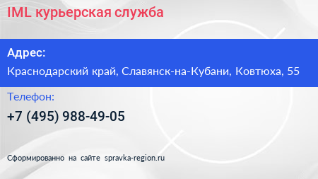 IML, курьерская служба по адресу Краснодарский край, Славянск-на-Кубани, Ковтюха, 55 в дальнейшем Организация, размещена в следующих категориях: