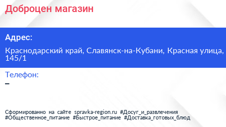 Доброцен, магазин по адресу Краснодарский край, Славянск-на-Кубани, Красная улица, 145/1 в дальнейшем Организация, размещена в следующих категориях:
