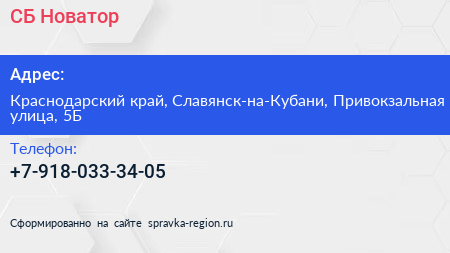 СБ-Новатор по адресу Краснодарский край, Славянск-на-Кубани, Привокзальная улица, 5Б в дальнейшем Организация, размещена в следующих категориях: