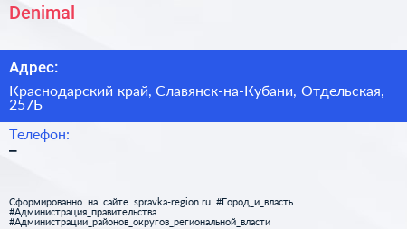 Denimal по адресу Краснодарский край, Славянск-на-Кубани, Отдельская, 257Б в дальнейшем Организация, размещена в следующих категориях: