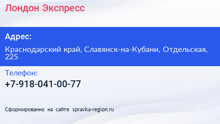 Лондон Экспресс по адресу Краснодарский край, Славянск-на-Кубани, Отдельская, 225 в дальнейшем Организация, размещена в следующих категориях: