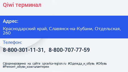 Qiwi, терминал по адресу Краснодарский край, Славянск-на-Кубани, Отдельская, 260 в дальнейшем Организация, размещена в следующих категориях: