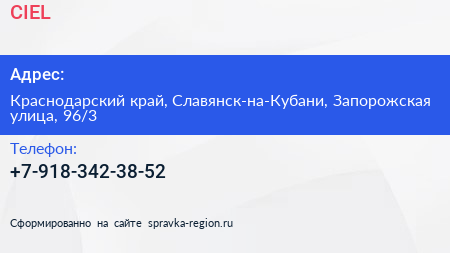 CIEL по адресу Краснодарский край, Славянск-на-Кубани, Запорожская улица, 96/3 в дальнейшем Организация, размещена в следующих категориях: