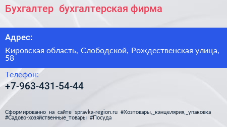 Бухгалтер+, бухгалтерская фирма по адресу Кировская область, Слободской, Рождественская улица, 58 в дальнейшем Организация, размещена в следующих категориях: