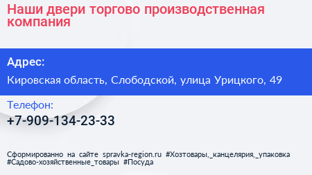 Наши двери, торгово-производственная компания по адресу Кировская область, Слободской, улица Урицкого, 49 в дальнейшем Организация, размещена в следующих категориях: