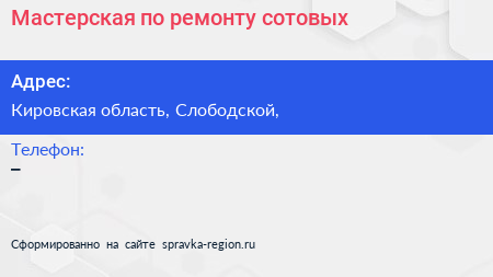 Мастерская по ремонту сотовых по адресу Кировская область, Слободской, в дальнейшем Организация, размещена в следующих категориях: