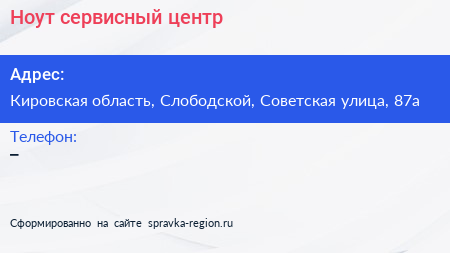 Ноут, сервисный центр по адресу Кировская область, Слободской, Советская улица, 87а в дальнейшем Организация, размещена в следующих категориях: