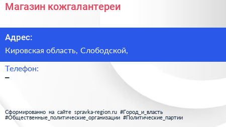 Магазин кожгалантереи по адресу Кировская область, Слободской, в дальнейшем Организация, размещена в следующих категориях: