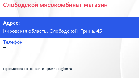 Слободской мясокомбинат, магазин по адресу Кировская область, Слободской, Грина, 45 в дальнейшем Организация, размещена в следующих категориях: