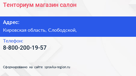 Тенториум, магазин-салон по адресу Кировская область, Слободской, в дальнейшем Организация, размещена в следующих категориях: