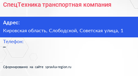 СпецТехника, транспортная компания по адресу Кировская область, Слободской, Советская улица, 1 в дальнейшем Организация, размещена в следующих категориях: